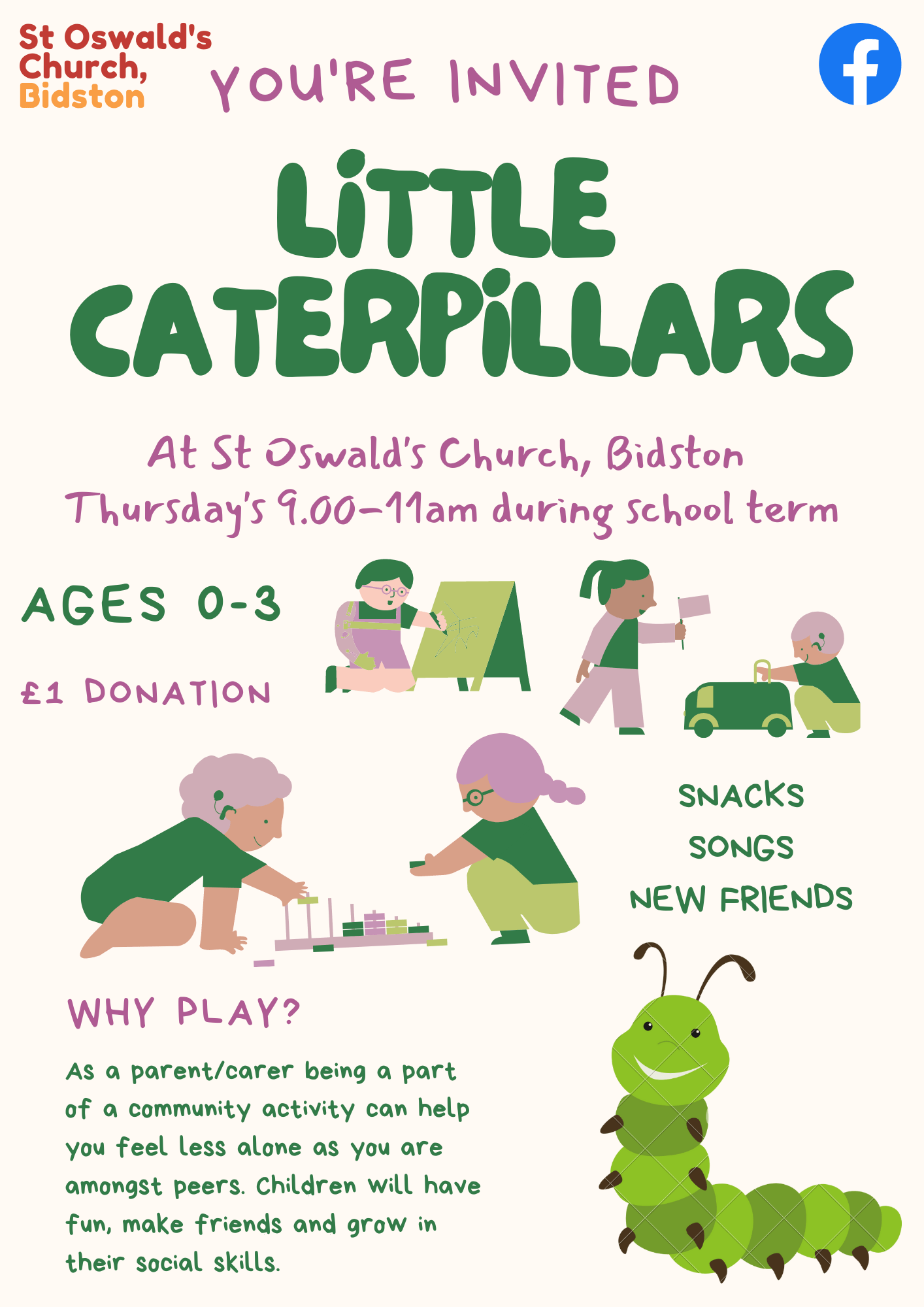 We’re thrilled to announce that our toddler group, Little Caterpillars, will be starting on 9 February 2023!