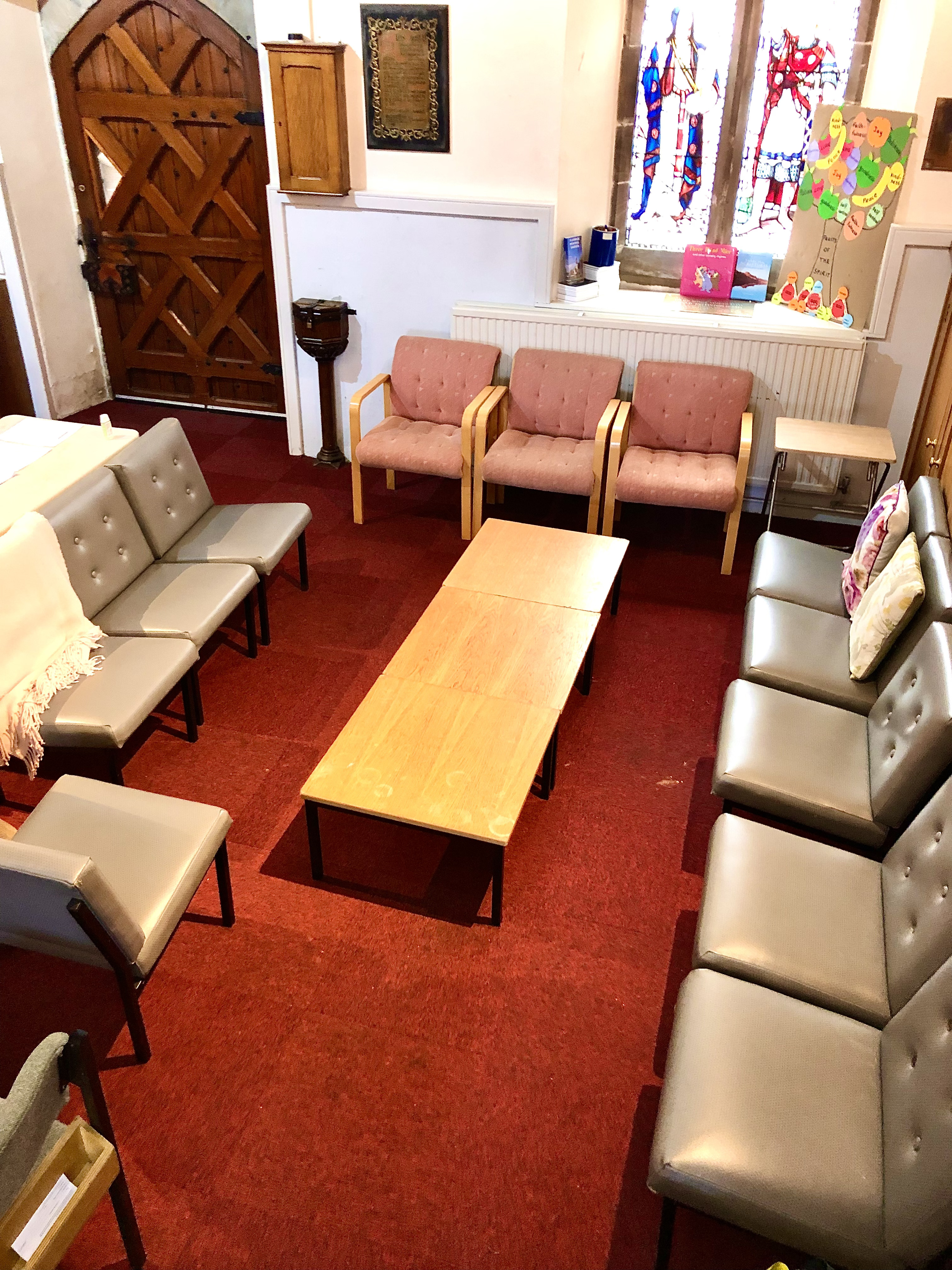 Along with our easily movable chairs, and flexible space, this space in St. Oswald’s church is a perfect place for any meeting, group, class, course, or workshop!